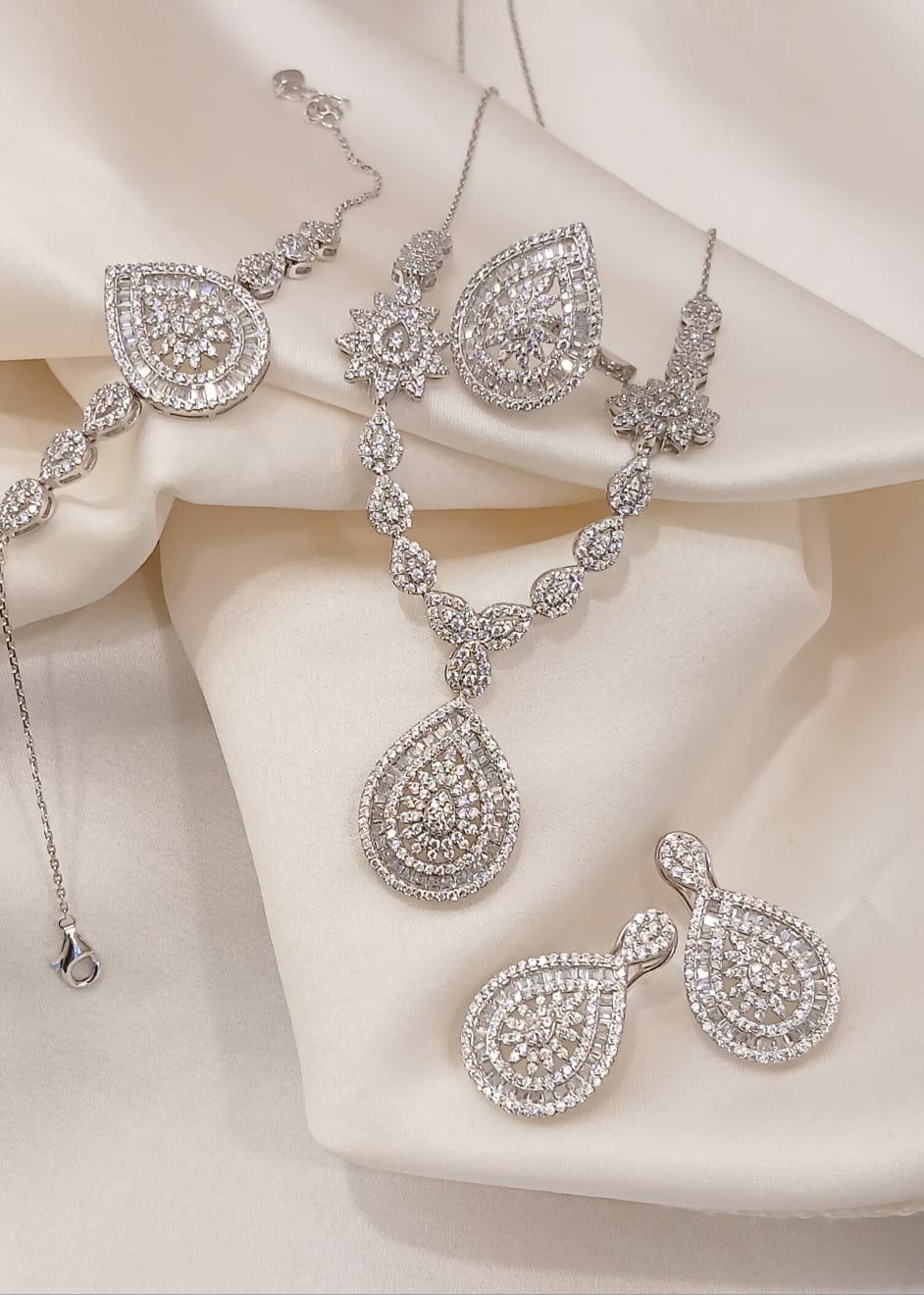 Size: Chain Length: 43 cm /THICKNESS : 1 cm /Pendant size: 3.2 cm/ Earring Length size: 2.7 cm/Bracelet Length size: 19 cm/Thickness: 0.9 mm/Ring size: 8.7